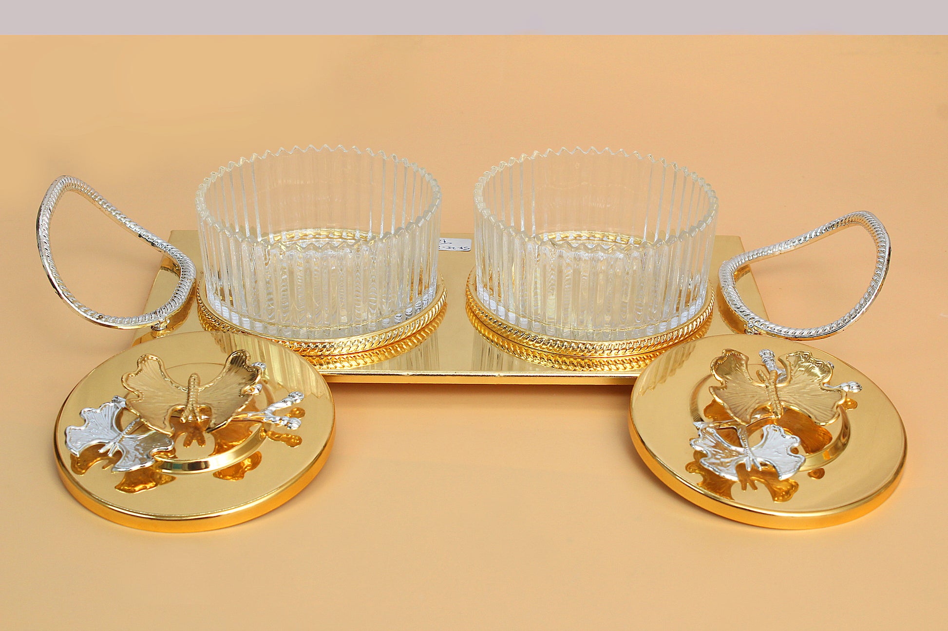 Premium quality Glass bowl with metal stand and lid