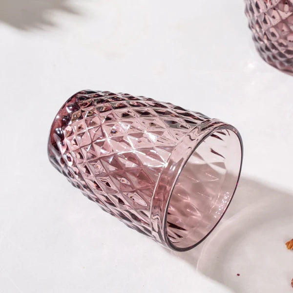 Raise your glasses and celebrate with the set of 6 glass tumblers that have a traditional aesthetic that will never go out of style. With the glass set's textured surface, the drinkware's thick, chip-resistant, tempered glass provides extra durability and a refined experience. Whether it's for a smoothie, iced tea, or water, the set of six glasses will always be the go-to option for serving guests. The subtle purple tint of the tumbler makes the glass set look elegant and elevates the look of the table setup.