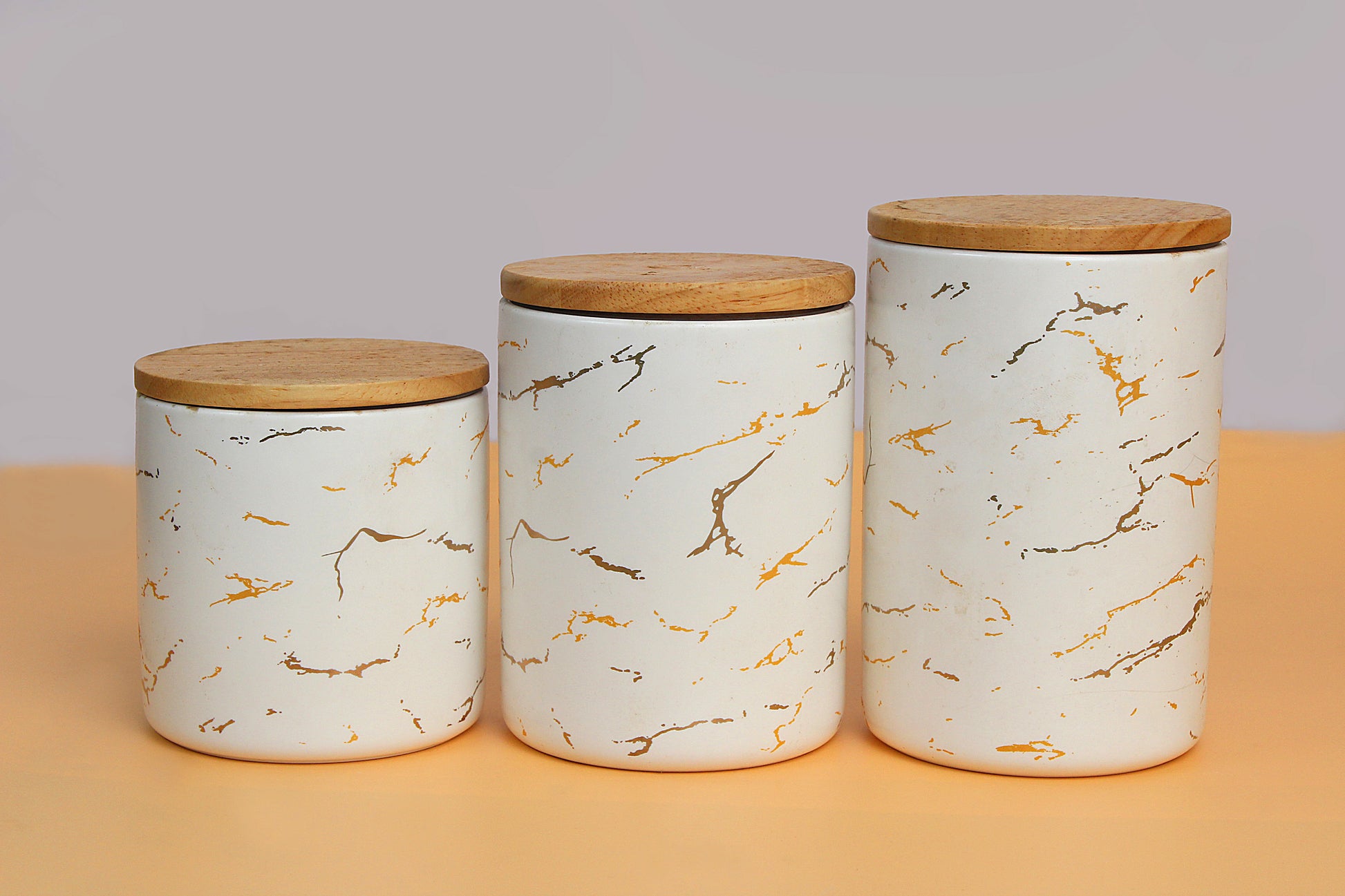 Set of 3 Ceramic jar set with Wooden lid 500ml | 750ml |1000ml Air tight container kitchen storage