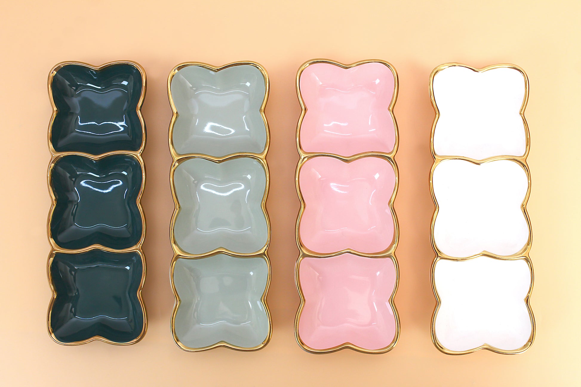 Three-slot Sauce Dish Relish Plate Bowl for Seasoning Spices Appetizers Dinnerware Set of 4 plate bowl With one colour each